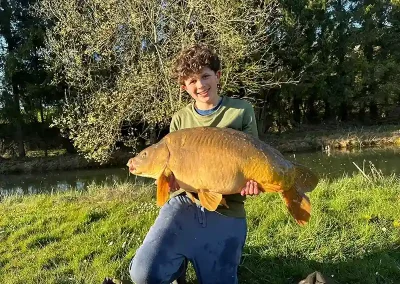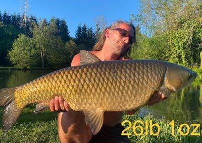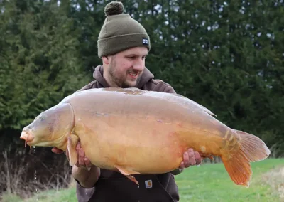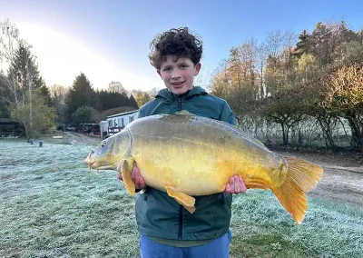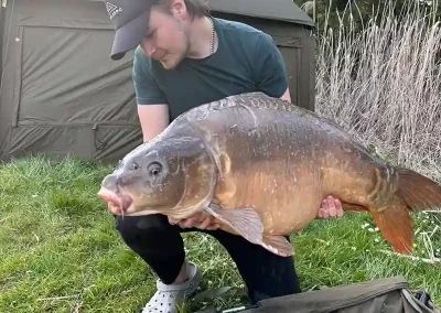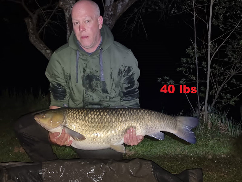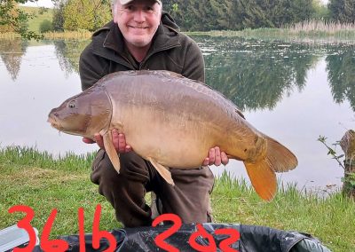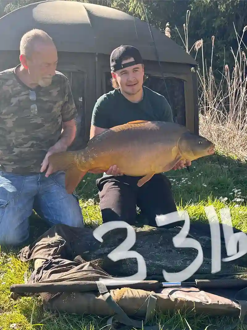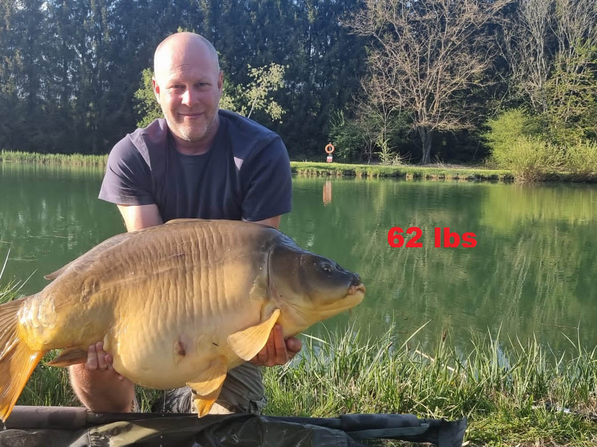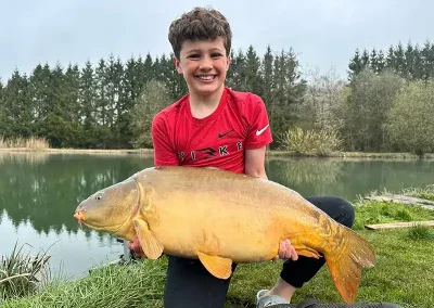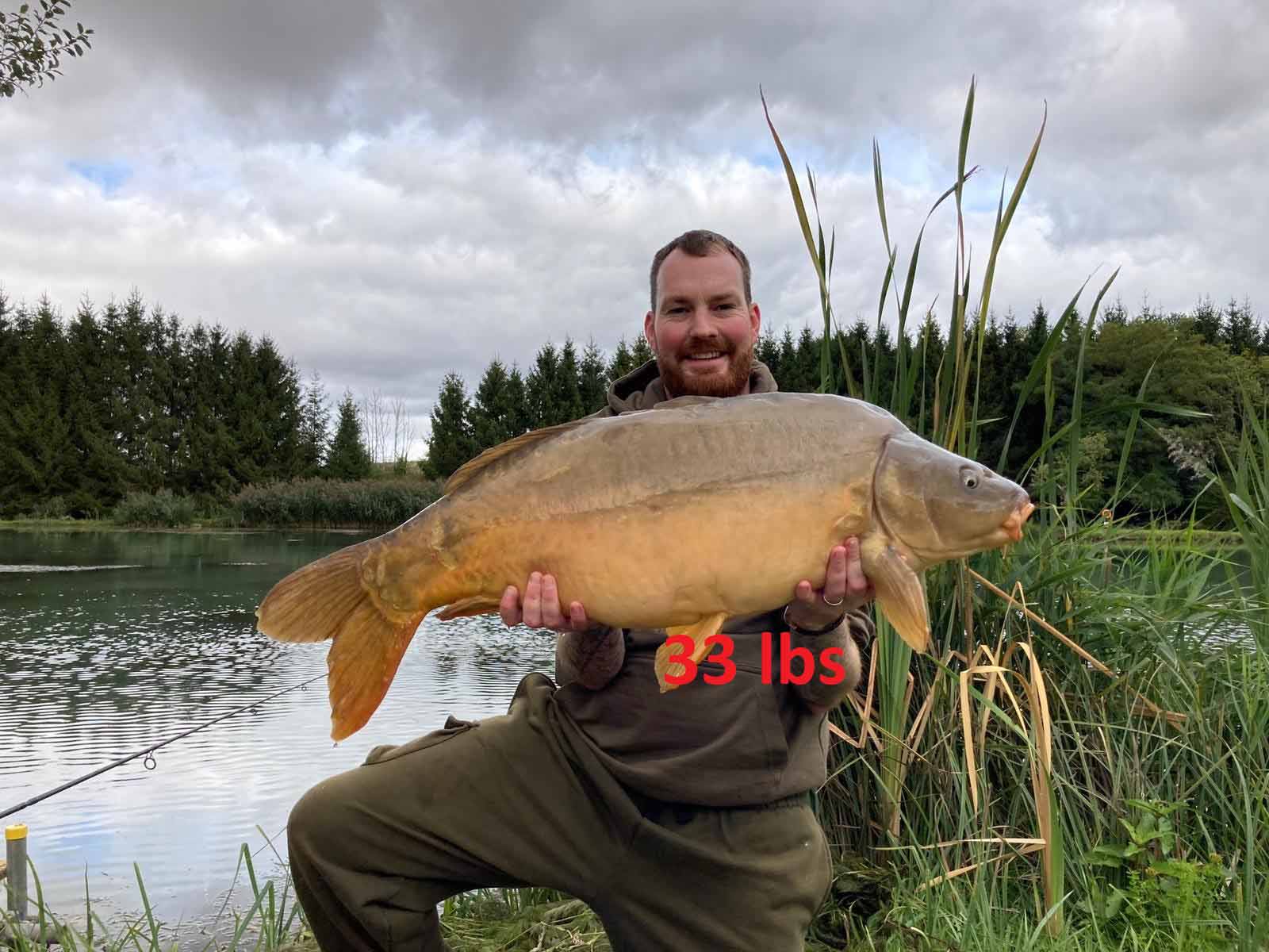 Lake stocked with Mirror, Grass and Common Carp into the 60lbs.