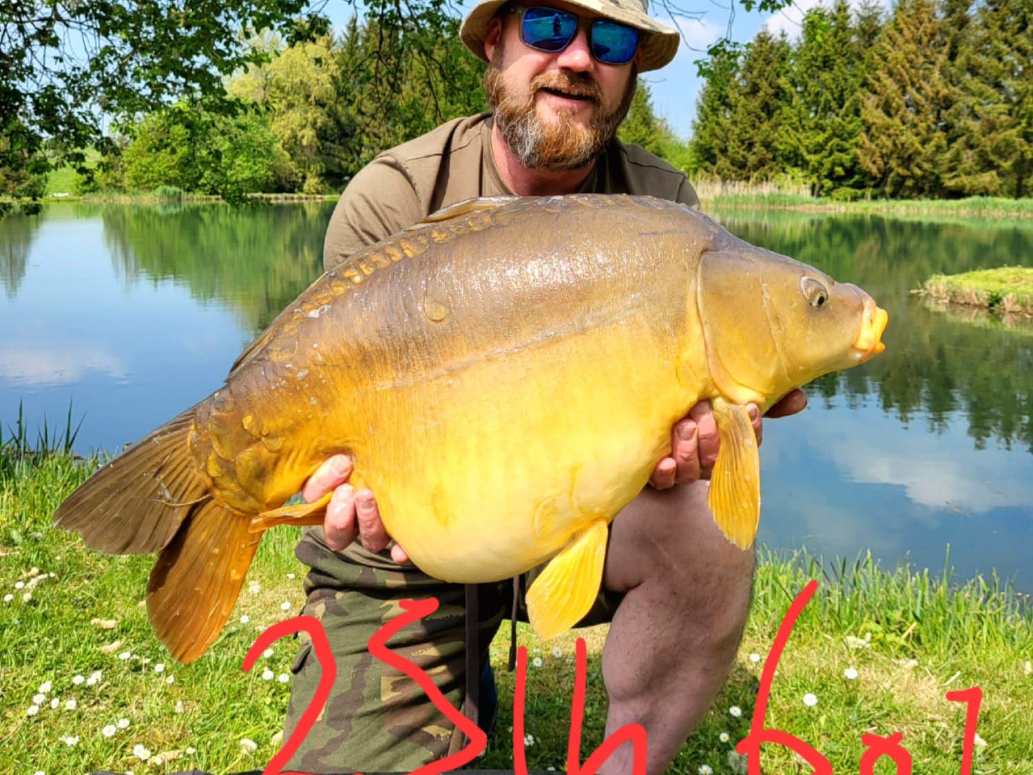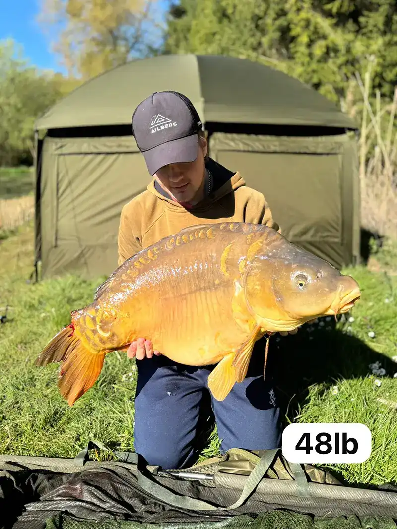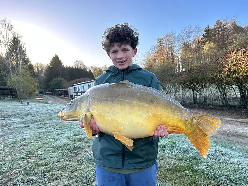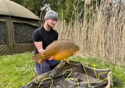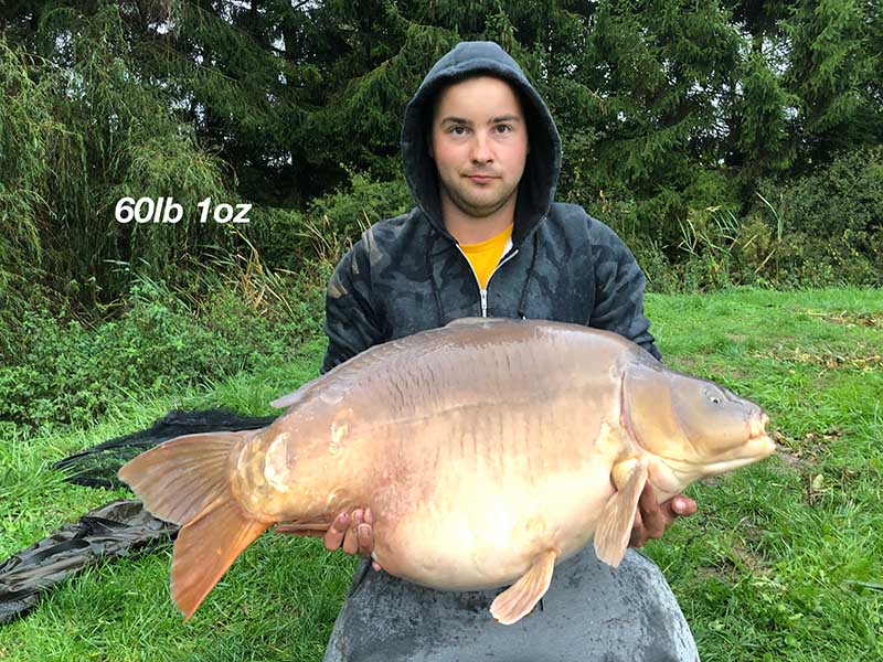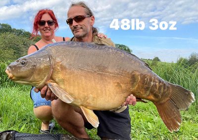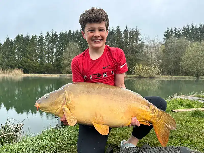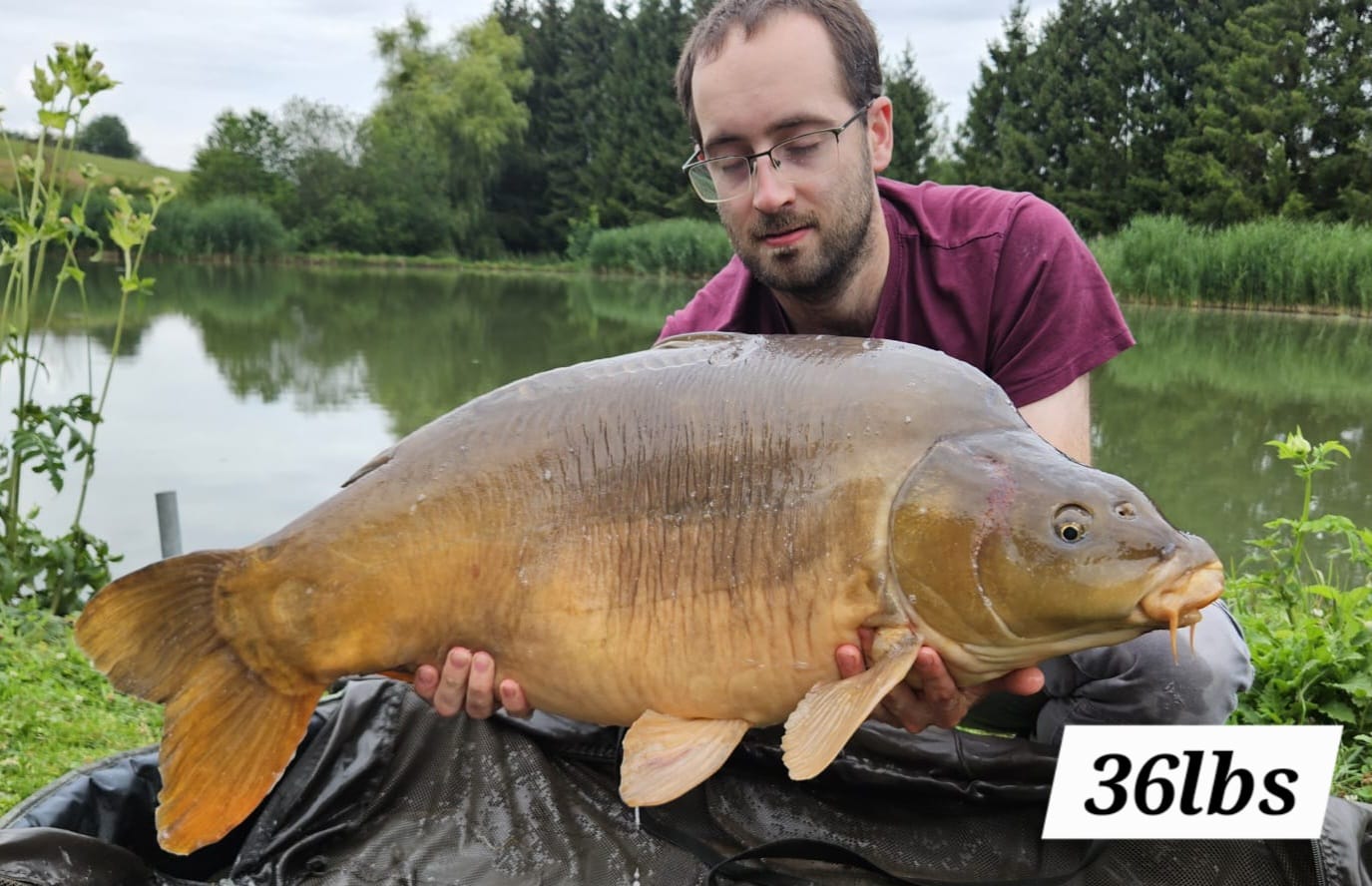 Lake stocked with Mirror, Grass and Common Carp into the 60lbs.