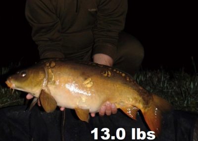 Our well stocked lake contains top quality healthy Grass, Common and Mirror Carp into their 60’s. The lake is not over fished, and you will see that we take great care of all our fish when you hook your first one out of the water. Our lake with a depth of eight feet in places is naturally fed from three springs and so the water is constantly being replenished.
