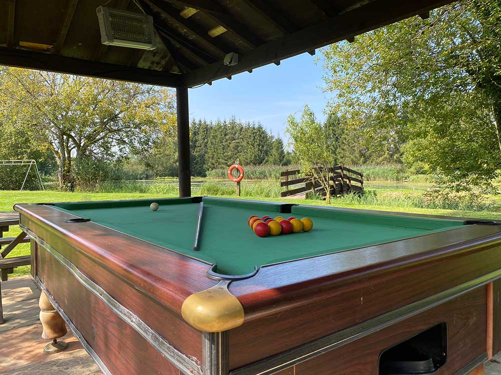 - Covered pool table and games area