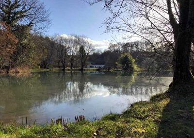 The lake is approximately 2.5 acres surrounded by woodland, mature and immaculate grounds with attractive trees and bushes. There is access on foot around the entire lake and parking is located next to the mobile home, which is about 15 metres away from lake. In addition the entire grounds are completely fenced with a gated entrance.